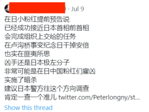 媒体和凶手本人都声称与政治立场无关,这不是一起针对安倍政治理念的仇恨的报复事件。