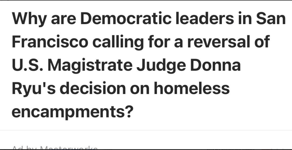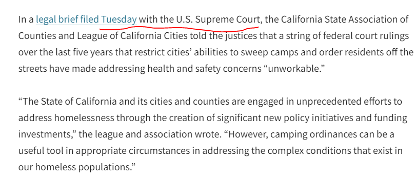 因为去年12月24日,第九联邦法院判决加州政府不得强拆无家可归者帐篷。这之后, 加州民主党政府一直在联邦法院上诉,最后把官司打到了最高法院(下面几个截图是相关的媒体报道)。