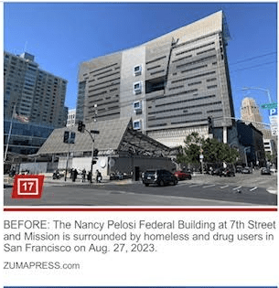 吃瓜群众说你蒙谁呢,今年八月,旧金山佩洛西政府大楼因为吸毒者流浪汉太多而让工作人员回家工作,不要来政府大楼,因为太危险(下图为ZUMAPRESS的相关报道截屏)。