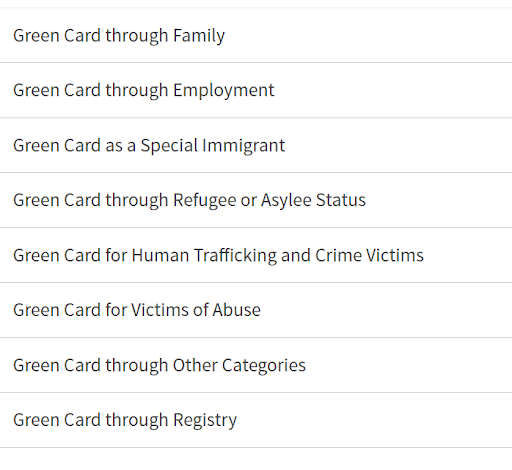 如果是绿卡,庇护申请者与工作绿卡也是不同的,分类可以参考下图:
