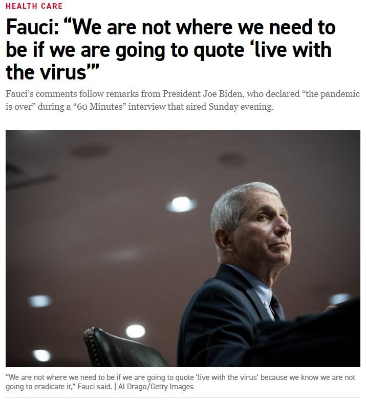 拜登的首席医疗顾问安东尼·福奇(Anthony Fauci)周一(9月19日)说:”如果我们要引用’与病毒共存’的话,我们还没有达到需要的程度。我们仍然必须意识到这种病毒是多么的不寻常,而且它继续有能力演化成新的变种,而这些变种无视处理疫情的标准公共卫生机制。”