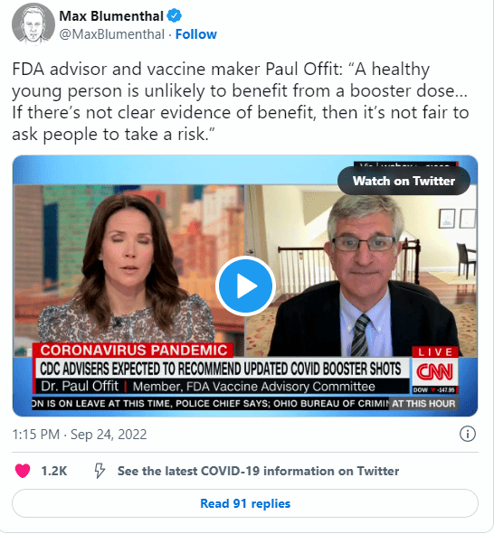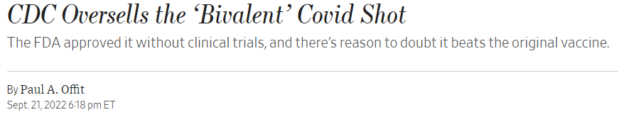 除此之外,奥菲特博士在《华尔街日报》撰写的一篇评论文章标题为《疾病预防控制中心过度推销”二价”新冠疫苗》(“CDC Oversells the ‘Bivalent’ Covid Shot”)中详细描述了他的看法。