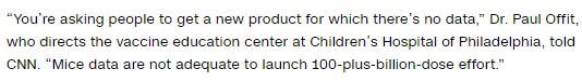 根据CNN发布的文章,奥菲特博士在9月初时表示,“(CDC在)要求人们获得一种没有数据的新产品。”