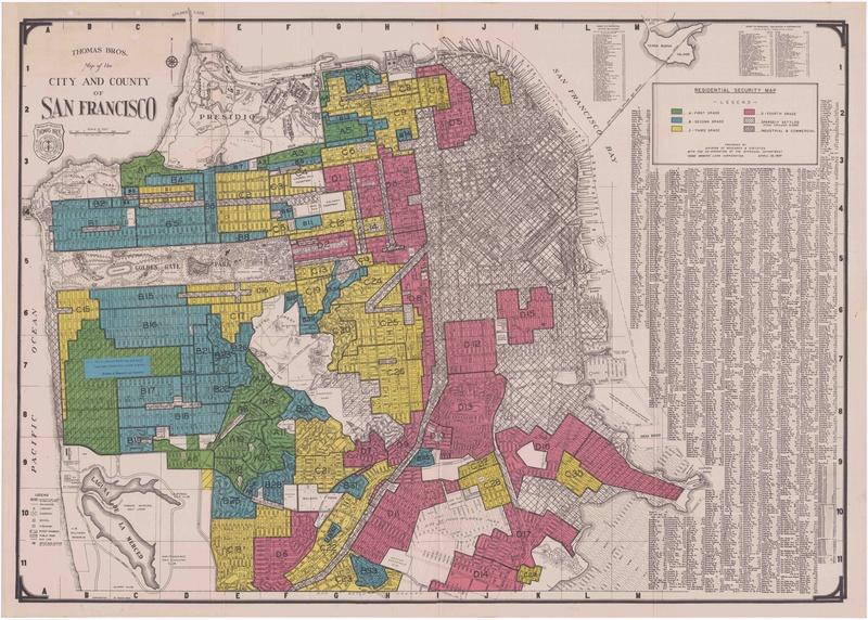 1937年由房主贷款公司(HOLC)绘制的旧金山”住宅安全地图”。图源:KQED