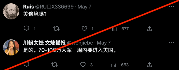 原推推主还回复网友评论说有“70-100万移民要在一周内进入美国”。