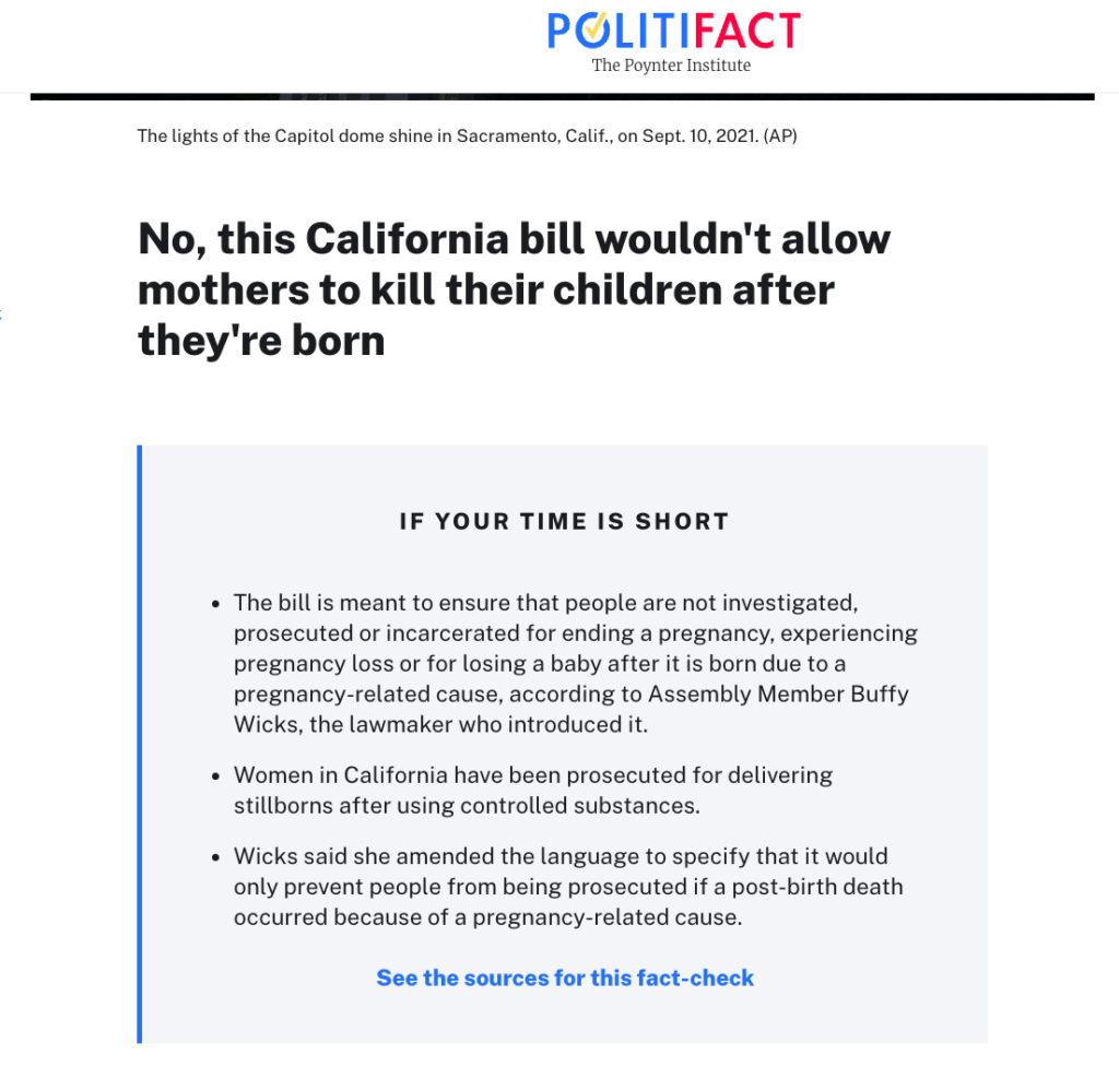 AB 2233法案旨在保护因与怀孕有关的其他问题而在分娩后失去婴儿的父母,避免他们被起诉。该法案的初衷是希望加州人可以放心地寻求与怀孕相关的医疗服务而不被潜在的结果干扰。因此,推特文章中所言的“杀婴合法化”或“儿童献祭”严重扭曲了事实。