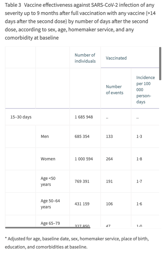 表格中未经调整的数据被卡尔森重点指出,这个数据显示疫苗接种者的原始感染频率更高。朱厄尔强调:“在其他36行中,显示了不同人口群体在接种疫苗后不同时间的疫苗效果估计,接种者的情况相同或更好,有时好得多,而且是明确的好!”