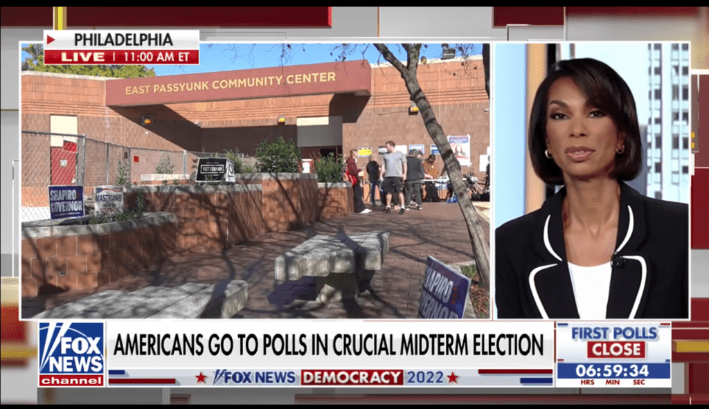 福克斯新闻的节目中,首先展示了宾州费城的东帕斯杨克社区中心(East Passyunk Community Center)的投票站外观。