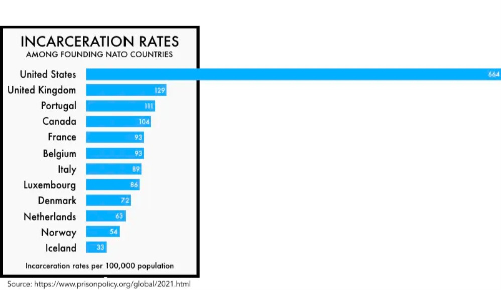 美国被关押的人数比率远远超过其它发达国家,图源:prisonpolicy