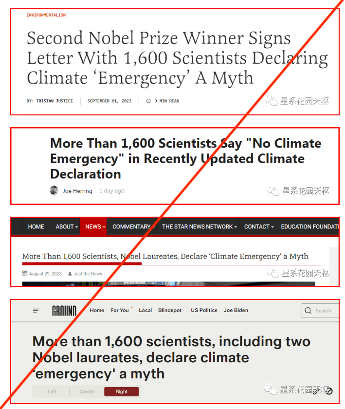 首先,微信文章中的相关报道仅限于极右翼小报,并非可靠信源。其次,文章中所谓的“1600名科学家”,数量并不准确,实际其中的科学家屈指可数。大多数联署人背景与气候科学毫无关系,但许多人与化石燃料行业相关。另外,发布宣言的机构CLINTEL被查出有化石燃料巨头的间接资助。