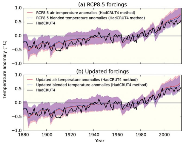 来自东英吉利大学的教授、气候研究室研究主任蒂莫西·奥斯本(Timothy Osborn)表示,根据已发布的模型数据,对比已经观测到的气候变暖和气候模型预测的气候变暖,二者之间存在很好的一致性,并不支持变暖速度远低于预测速度的说法。