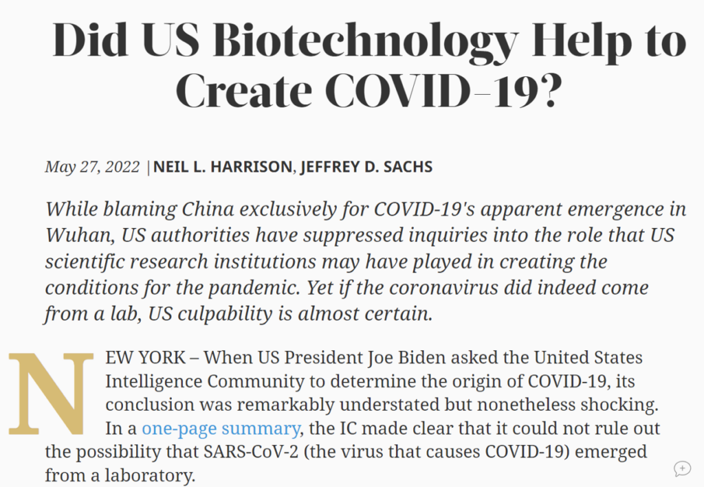 萨克斯关于新冠起源的说法,并没有多少事实根据,被没有可信度的媒体传播。而现在学界广为接受的观点认为新冠病毒不是人为制造出来的。