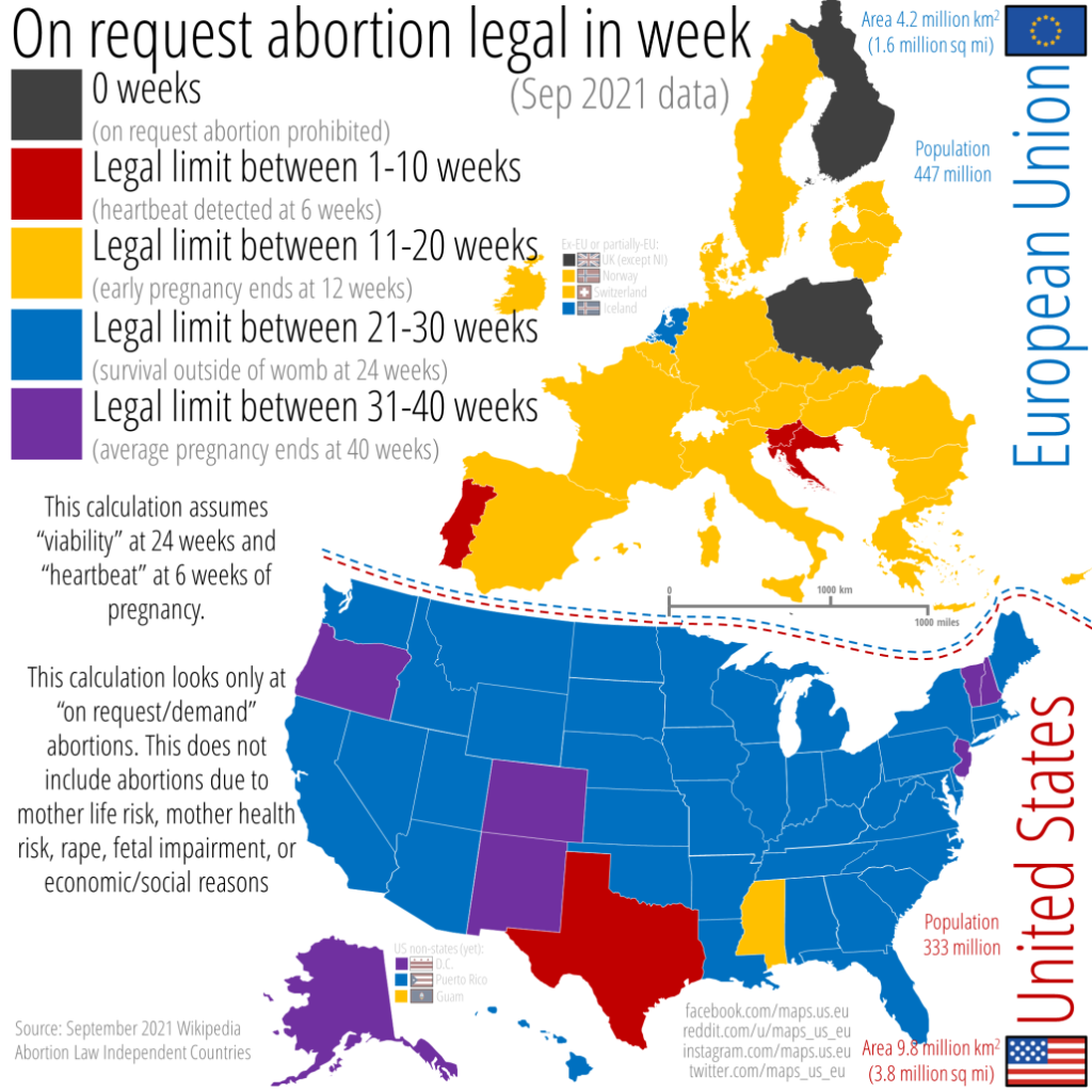 此外,在多布斯案之前,美国许多州为规避罗伊案制定反堕胎立法,使女性在妊娠期前三个月堕胎的官僚主义障碍远远大于欧洲大部分地区。