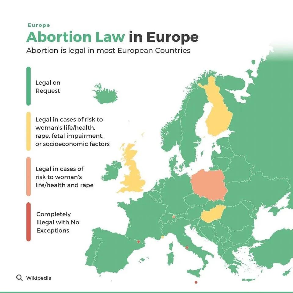欧洲,仍有几个国家直接禁止堕胎,或保持高度限制性的法律,如波兰和摩纳哥,但它们是例外。这并不是说,在欧洲,堕胎总是很容易的。在一些国家,官僚主义的障碍仍然很大。在其他法律上堕胎合法的国家,如意大利,因为许多人出于道德或宗教原因反对堕胎,很难找到愿意做堕胎手术的医生。但在美国也是如此,在禁止堕胎的州,美国女性通常要比欧洲女性走到更远的地方才能获得这个服务。