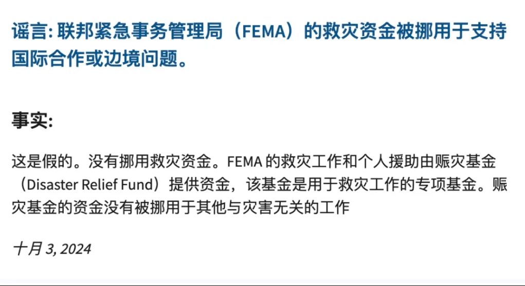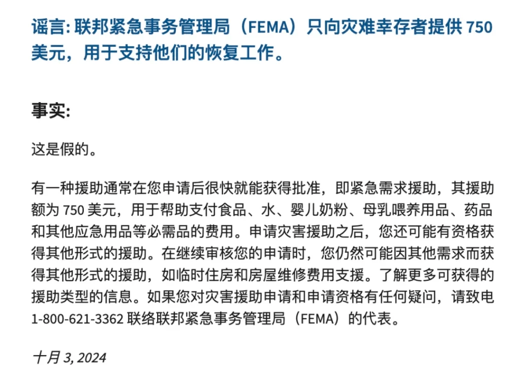 对于这条谣言,在FEMA的辟谣页面中也有所回应: