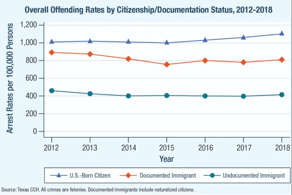 https://nij.ojp.gov/topics/articles/undocumented-immigrant-offending-rate-lower-us-born-citizen-rate