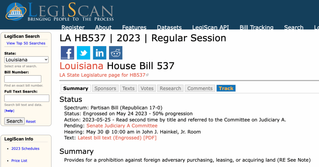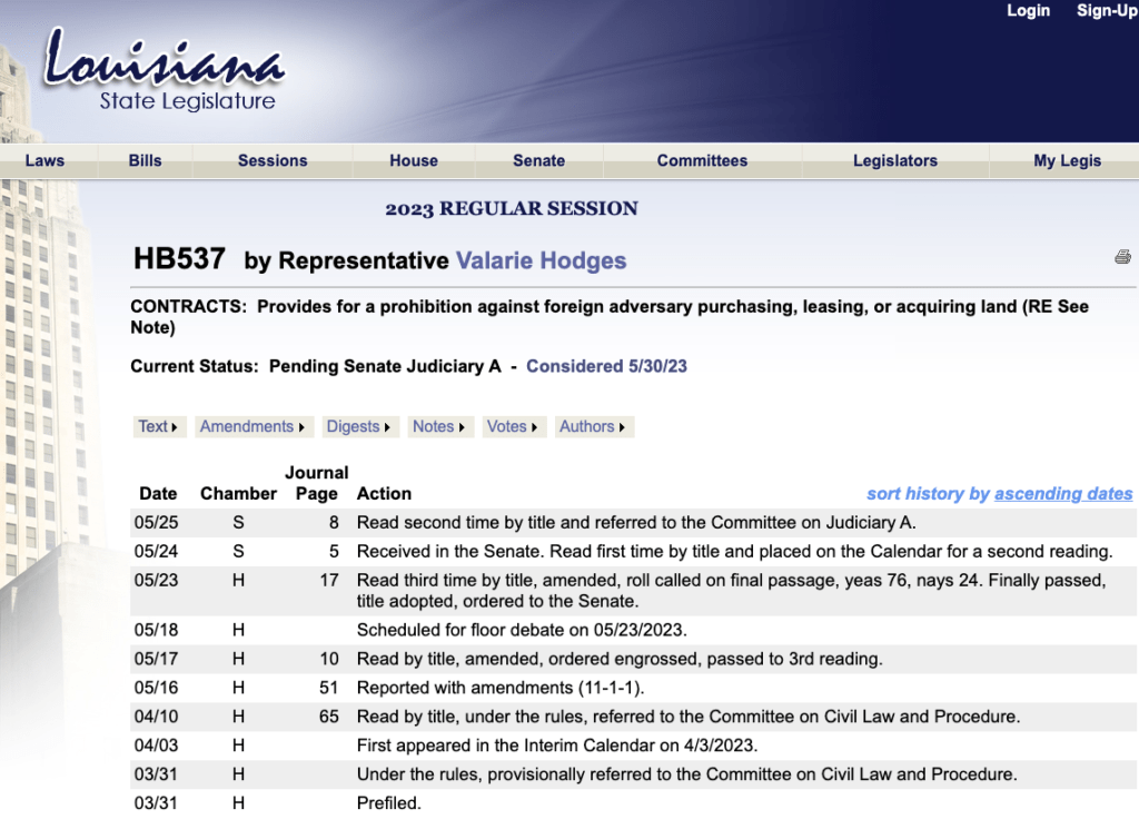 http://reappropriate.co/2023/05/louisiana-state-house-passes-ban-on-foreign-land-purchase-texas-state-bill-unlikely-to-continue/#more-38456