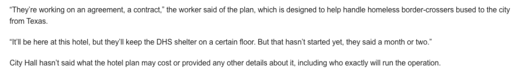 此次招标是纽约市发起的为被德州州长送至纽约的移民提供收容所。文中的酒店Row NYC因为业务不景气,主动投标,将专门的一层楼作为移民收容所。酒店价格并非文中所说般高昂,甚至实际上最贵的房间价格才等同于文中最便宜的房间价格。小报和微信公众号文章断章取义,歪曲数据、转移焦点,描绘得仿佛是纽约市府“财大气粗”地包下酒店。经核查,并不符合事实。