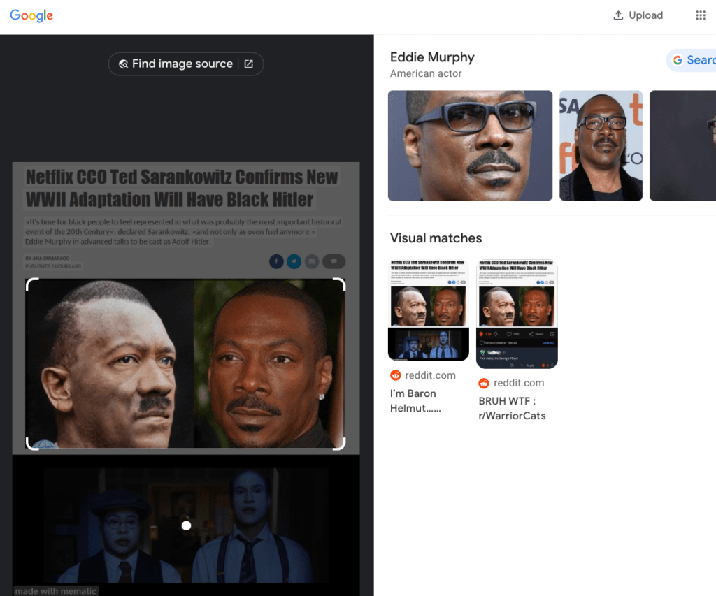 用图片反搜功能搜索,此图片源自Reddit论坛的梗图 (meme) 区,是网友以娱乐为目的制作的图,并不是真实存在的报道截图。