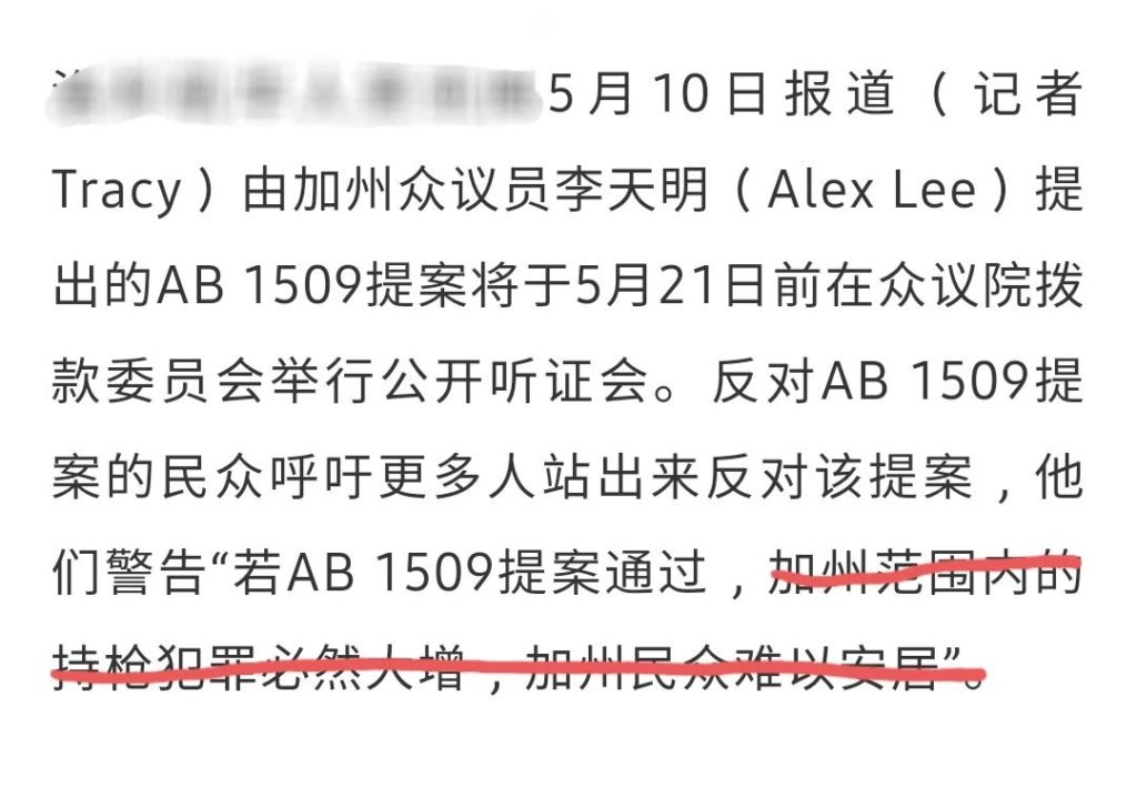 加州议员李天明(Alex Lee) 提出的AB-1509法案就是希望针对现有仅仅由于持枪而自动增加刑期的修改。
