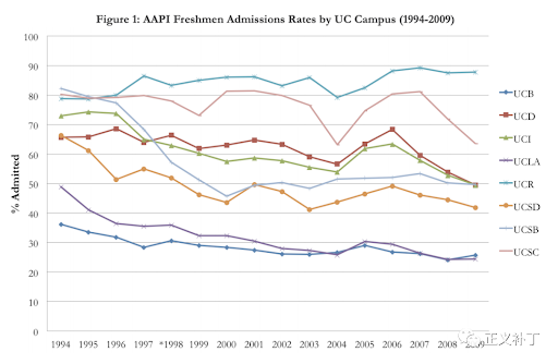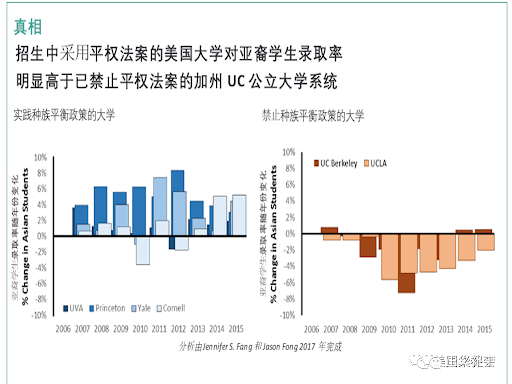 此外,数据显示,禁止平权法案才会伤害亚裔入学率,实行平权法案的大学的亚裔录取率比禁止的加州大学体系明显要高。