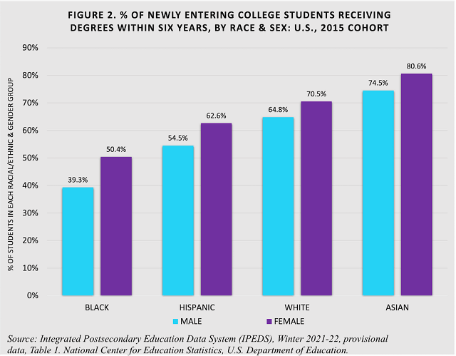 也就是说,白人男性在每个教育水平上都保持着收入优势,除了本科以上学位。这可能也有助于解释白人男性上大学的动力比其他群体少。事实上,30%没有大学学位的白人男性表示,他们没有完成大学学业,是因为这对他们的职业生涯没有必要;27%的白人女性也这么说。