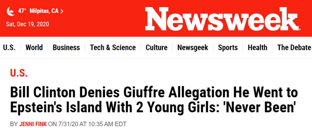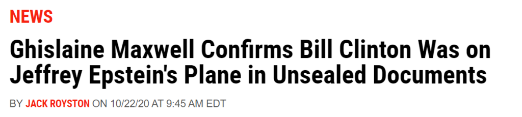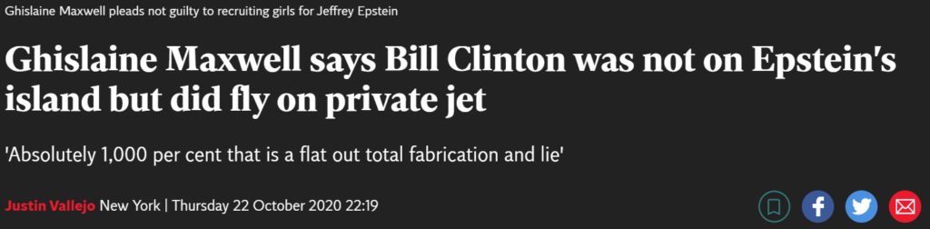 对此,克林顿予以坚决否认,说自己从来没去过。他的说法也得到了因爱泼斯坦案一同被告的爱泼斯坦的女友Ghislaine Maxwell的确证。但是克林顿确实跟爱泼斯坦关系不错是可以得到证实的,克林顿确实坐过爱泼斯坦的飞机。