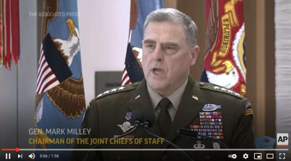 我们知道美国的军队保持中立,捍卫宪法,而并不偏向于某一个政党。今年11月12日,美国参谋长联席会议主席马克·米利将军在一次演讲中就明确指出,“我们的军队是独一无二的。我们不向国王或女王、暴君或独裁者宣誓。我们不向某个人宣誓。我们不向一个国家、一个部落或宗教宣誓,我们只对宪法宣誓。而站在这个博物馆里的每一个士兵,陆军、空军、海军陆战队、海岸警卫队队员,我们每个人都将不计个人代价保护和捍卫宪法。”