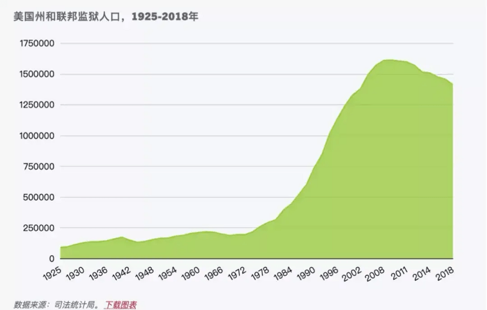 尽管美国仅占世界人口的5%,但它却拥有全世界近四分之一的囚犯。在过去的四十年中,美国实行严厉的犯罪政策,监狱开始爆炸式增长,各种因为贫困、种族主义、缺乏教育以及精神病等因素处于社会底层的人,严重不成比例地,也不合理地被扔到了美国监狱里。