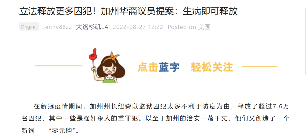 相关阅读:《事实核查 | 别被标题党吓死,加州没有要提前释放7.6万名罪犯》