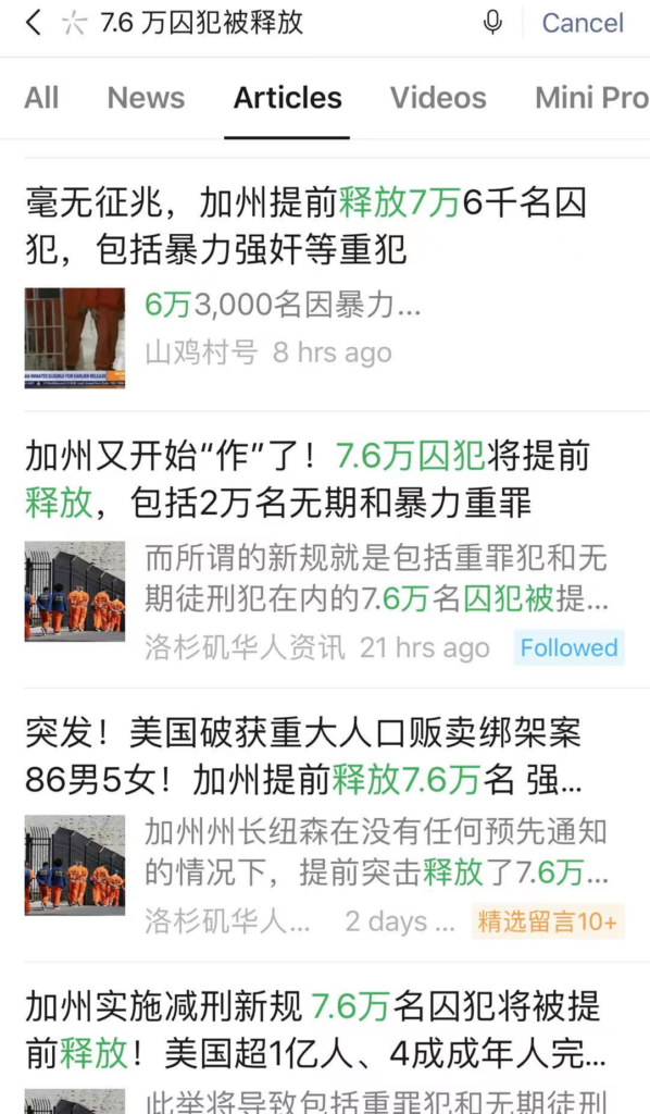标题党文章说“加州欲突击释放7.6万名罪犯”,轻则说是误导,重则说就是一条不怀好意的虚假消息。俗话说,事出反常必有妖,看到一些操弄情绪,吸引眼球,骇人听闻,例如“疯了”,“突发”,“紧急”之类的题目,还是多长点心眼,自己去核查一下比较好。也可以参考前文《自媒体时代如何识别假新闻》,来掌握识别假新闻的必要手段。