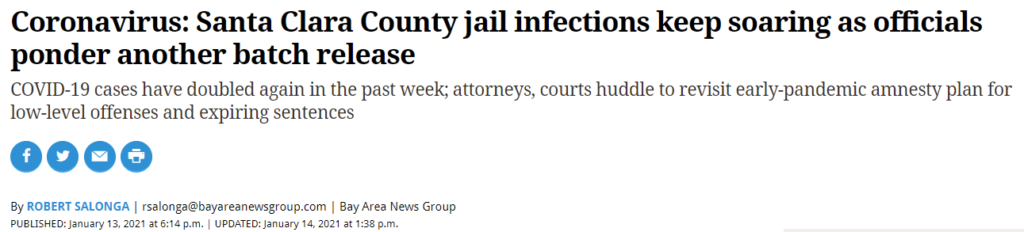 在新冠疫情发生之前,服刑人数已经下降到117,00名。在过去的一年里,又有21,000人离开了州立监狱 — 其中大约一半被暂时关押在县级监狱里。新冠疫情期间,有很多监狱是新冠病毒感染的重灾区。