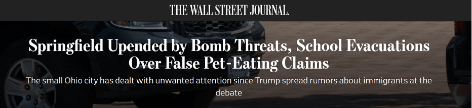 据《华尔街日报》报道,总统辩论后斯普林菲尔德这个小镇,不仅成为了全国媒体关注的焦点,也成为了右翼极端分子关注的焦点。小镇上的海地人,一觉醒来,发现窗户被砸,并受到炸弹威胁。
