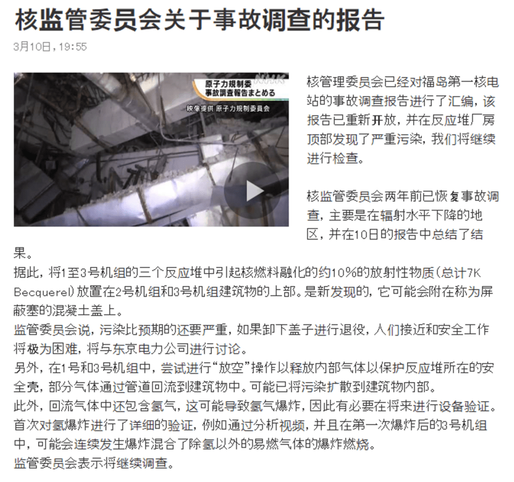 这个官方机构委员会从两年前开始,写了一个关于福岛核电站爆炸的报告。有好几百页。NHK 对此事进行了报道。
