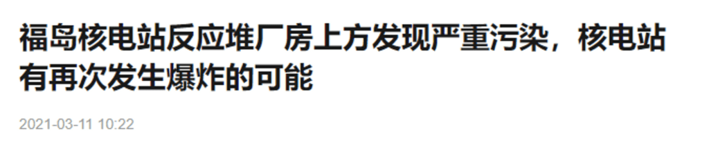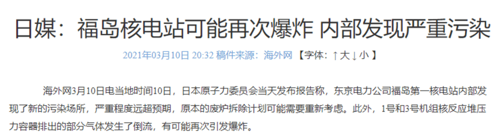 在福岛核电站爆炸发生十周年之际,从 3 月 10 日开始,有国内部分媒体报道 ,福岛核电站仍有可能发生爆炸。