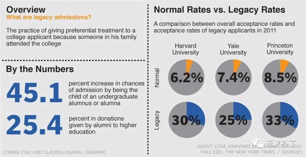 1、华人们争吵平权法案(AA)是否真的会伤害我们的同时,另一种不公平的录取制度——Legacy Admission 却堂而皇之的应用了百年之久。本文试图告诉你这种录取体系的来龙去脉与恶劣影响。