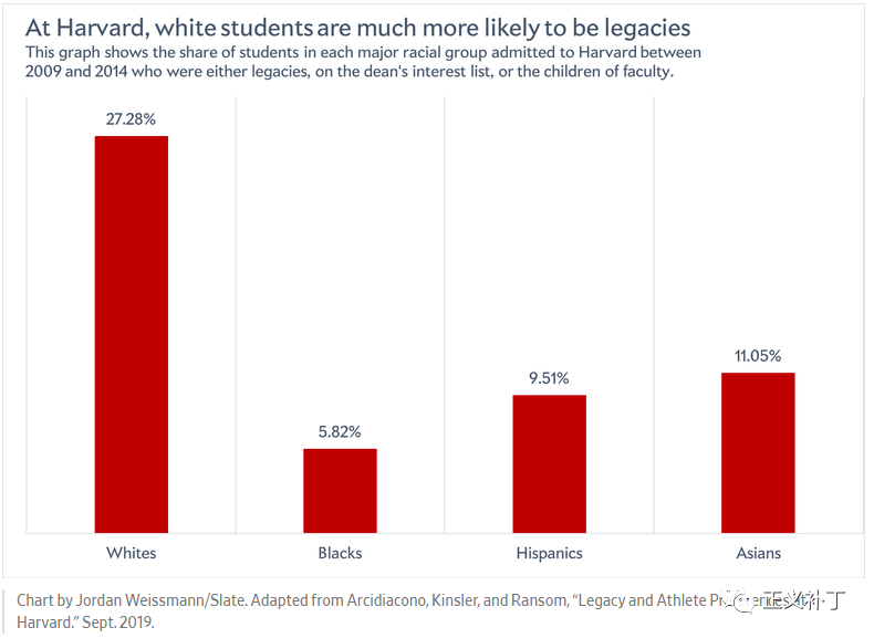 按照2010-2015年的数据,白人学生中有超过20%[4]是通过Legacy Admission录取的,而在亚裔中这一比例只有6.6%。