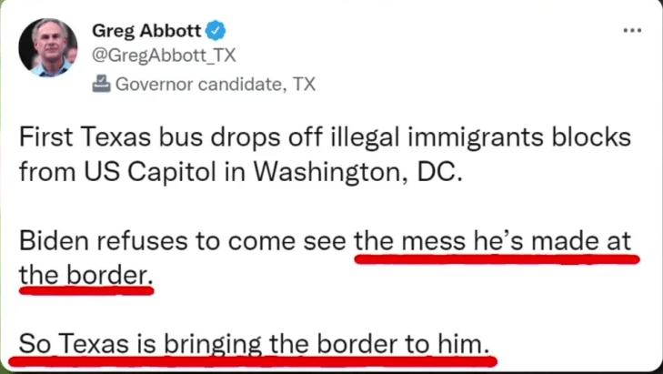 德克萨斯州州长阿博特,今年已经运送了超过6000名无证移民去华盛顿。根据NBC电视台的调查。每运送一个无证移民到华府,需要花费1400美元以上。这个价格超过了从德克萨斯边境城市到首都的头等舱机票价格。从政府部门获得的文件可以得知,今年四五月间用大巴运送的费用超过了160万美元。