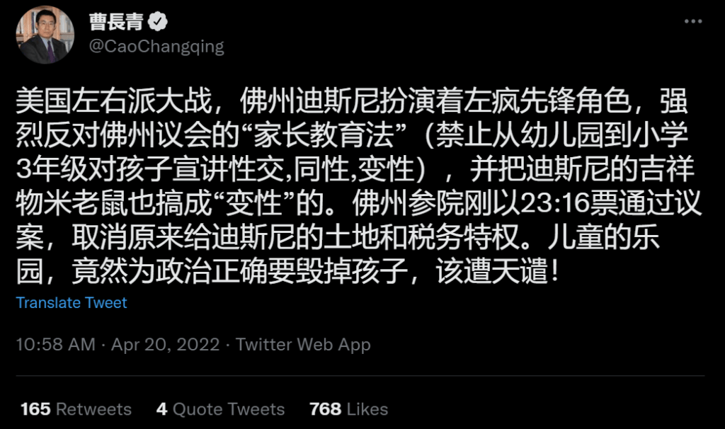 迪斯尼另一个争议是2020年,暂时将《乱世佳人》下架,目的是对那段历史做一个标注,经过短暂时间做出处理后又上线了。其实并不是多大的一个事情,属于常规操作,结果就被喜欢吵话题的右翼媒体抓住机会攻击。又说是言论审查,又说是搞文革,其实都是八竿子都打不着。就是一些受多了国内教育熏陶的人,把自己对中国的理解投射到美国的政治现实中。