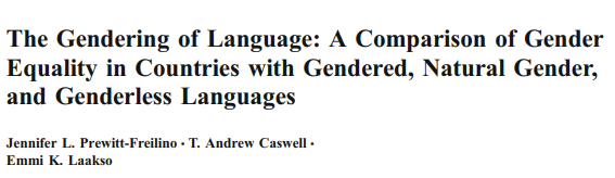 在社会上,包容性别的语言近年来越来越受到关注。2019年皮尤研究中心(Pew Research)的一项调查发现,大约五分之一的美国人认识到有人在使用“他”或“她”以外的性别中性代词。在18到29岁之间的年轻受访者中,这些几率增加到32%。