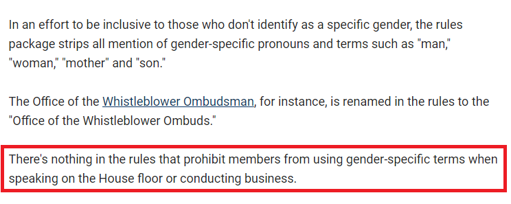 连右翼媒体福克斯新闻都专门做了说明,说没有人在议会中,会因为使用非性别中性词汇被处罚,更不用说普通百姓了。
