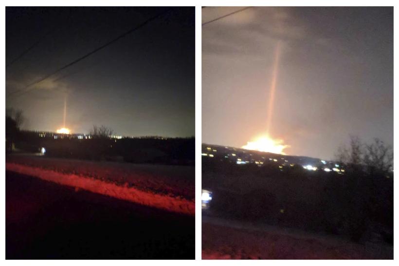还有一幅照片显示了一个火球和一道明亮的光向夜空升起。有人因此声称野火不是自然现象。