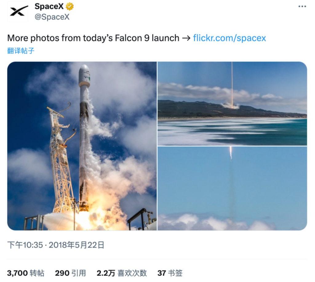 然而,该图像恰恰跟X平台老板马斯克的另一份产业有关:2018年5月,马斯克的Space X在加州发射了猎鹰9号火箭,随后SpaceX在其X和Flickr帐户上分享了当时的情景。可以看到,两张图片一模一样,直接使用图片反向搜索就可以搜到。