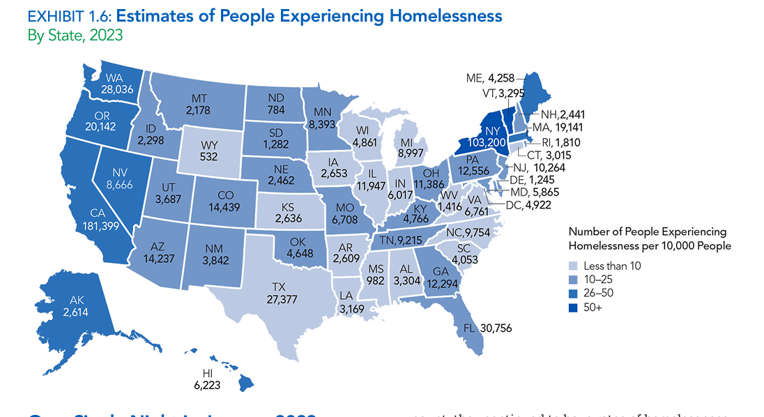 从以上最新的数据至少可以看到,无家可归的问题是全美各地都在经历的一场危机,但人口较多或人口密度较大的州问题更加严重。
