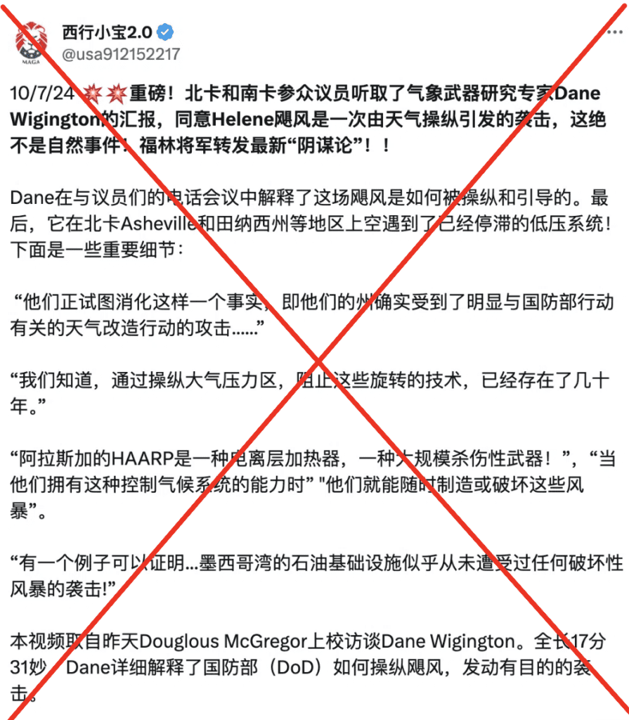 这则推文浏览量接近1200万次,开启了飓风海伦被人为操纵着。