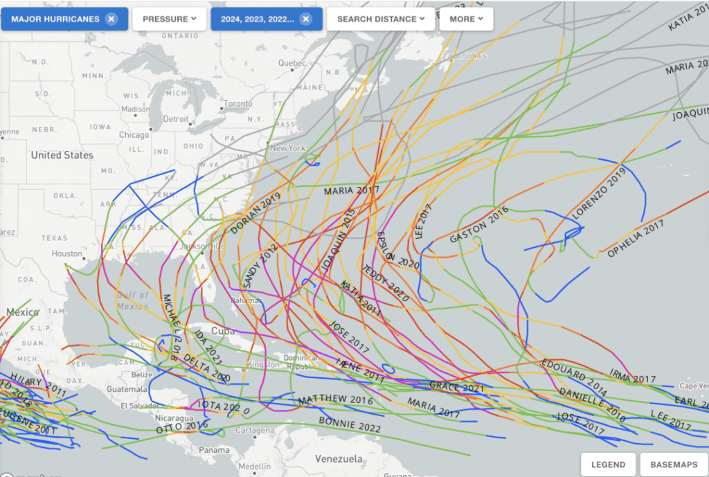 https://coast.noaa.gov/hurricanes/#map=4/32/-80