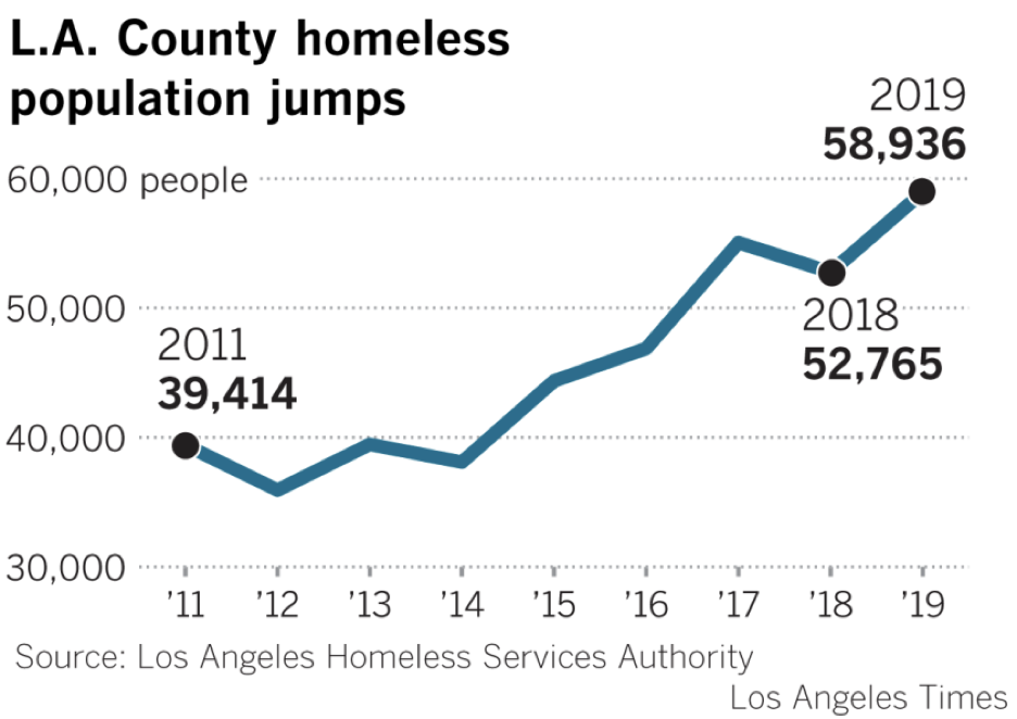根据2020年的最新数据,洛杉矶游民总数达到了6.6万,约有4.1万名无家可归者缺乏住房和庇护所。因为Covid-19肆虐,游民堪忧的卫生状况增加了新冠疫情的传播风险。美国地区法院法官大卫-卡特(David O. Carter)要求尽快将无家可归者转移到庇护所,可是市政府并没有足够的庇护所收容这么多的无家可归者。