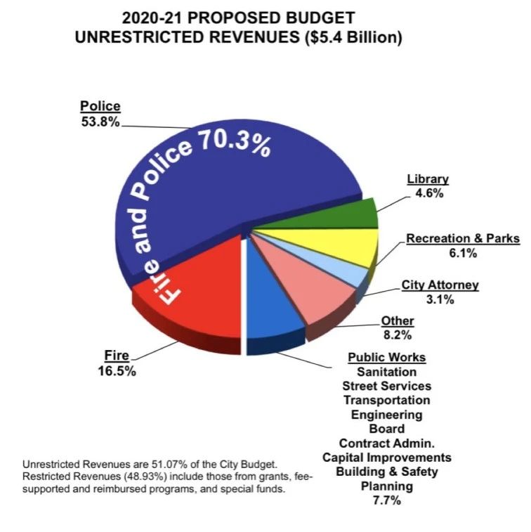 洛杉矶市政府公开的2020年到2021年财政预算,54亿美元里面,那五百多万美再怎么贵,几个房子的造价不过是全年支出的0.096%,连千分之一都不到。有些人要是真的在乎自己纳税金额,不如找一下市长问问,为什么洛杉矶警察局花掉了70%纳税人的钱?作为市政支出的最大头,洛杉矶总共也就9000个警察,这37.8亿美元花到哪去了?