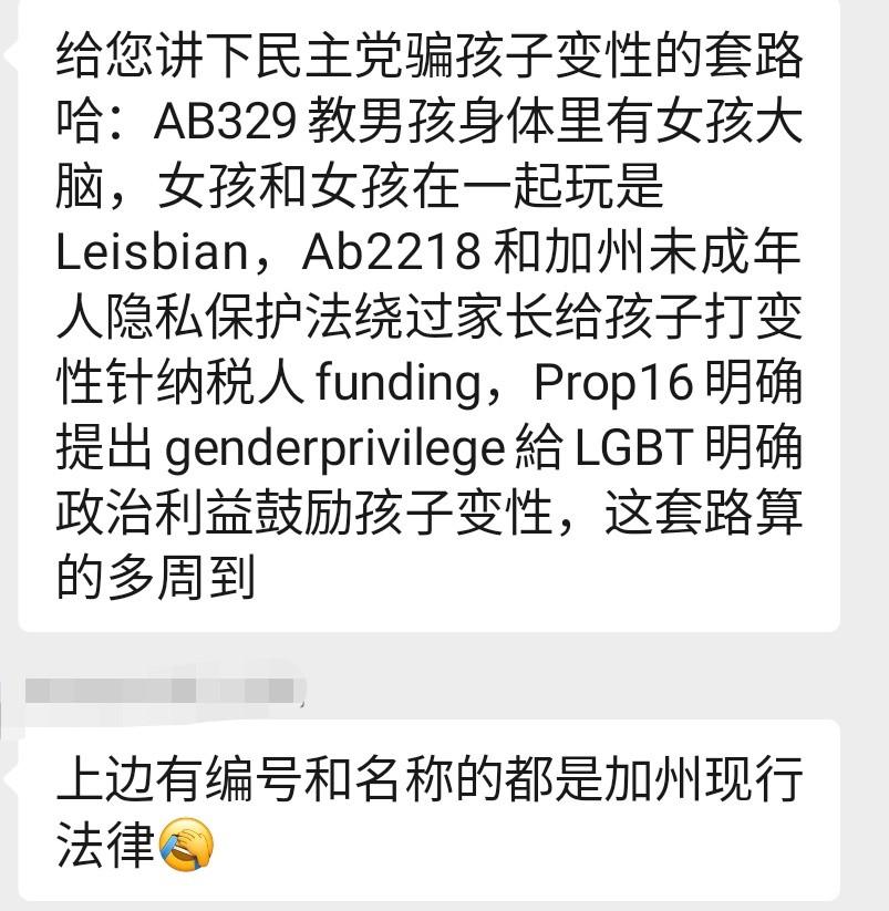 这次我们来说一说,一到选举季,在网络空间充斥着的右翼对LGBTQ(女同性恋者、男同性恋者、双性恋者、跨性别、酷儿)群体污名化的谣言。利用炒作跟LGBTQ有关的加州法案,尤其是与跨性别有关的议题来煽动仇恨和恐慌,来吓唬华人家长投共和党的票,是右翼谣言的固定套路。这种做法同时又进一步加剧了华人家长对于LGBTQ群体的误解和恐惧,影响尤为恶劣。