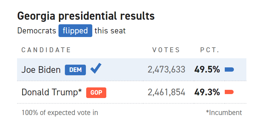 要知道,事情的发生地佐治亚可是美国传统意义上的红州。2020年总统大选,拜登只以微弱优势取胜,差距只有11779票。川普还专门打电话给佐治亚州共和党籍的州务卿布拉德·拉芬斯佩格(Brad Raffensperger)施压,要求他给自己再弄出11780张选票,让自己当选。电话录音后来被曝光,还爆出一个丑闻。“佐治亚州是民主党治下”的说法不符合事实。